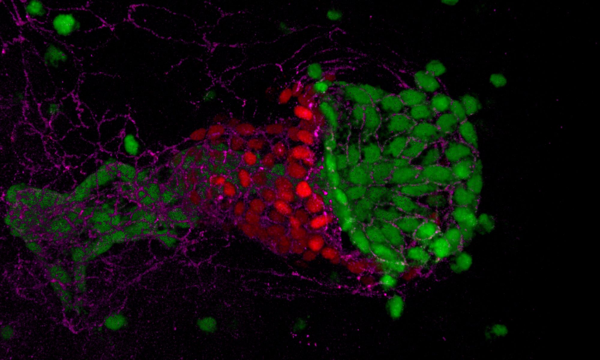 Movies show the movement of endocardial cells (top) and myocardial cells (bottom) during the initial stages of heart tube formation